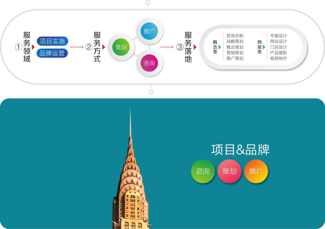 我們提供:項目全程策劃、推廣。營銷一站式的活兒我們全得干!為了養家糊口,這些手藝活兒我們也得干:LOGO設計、VI設計、門戶網站。